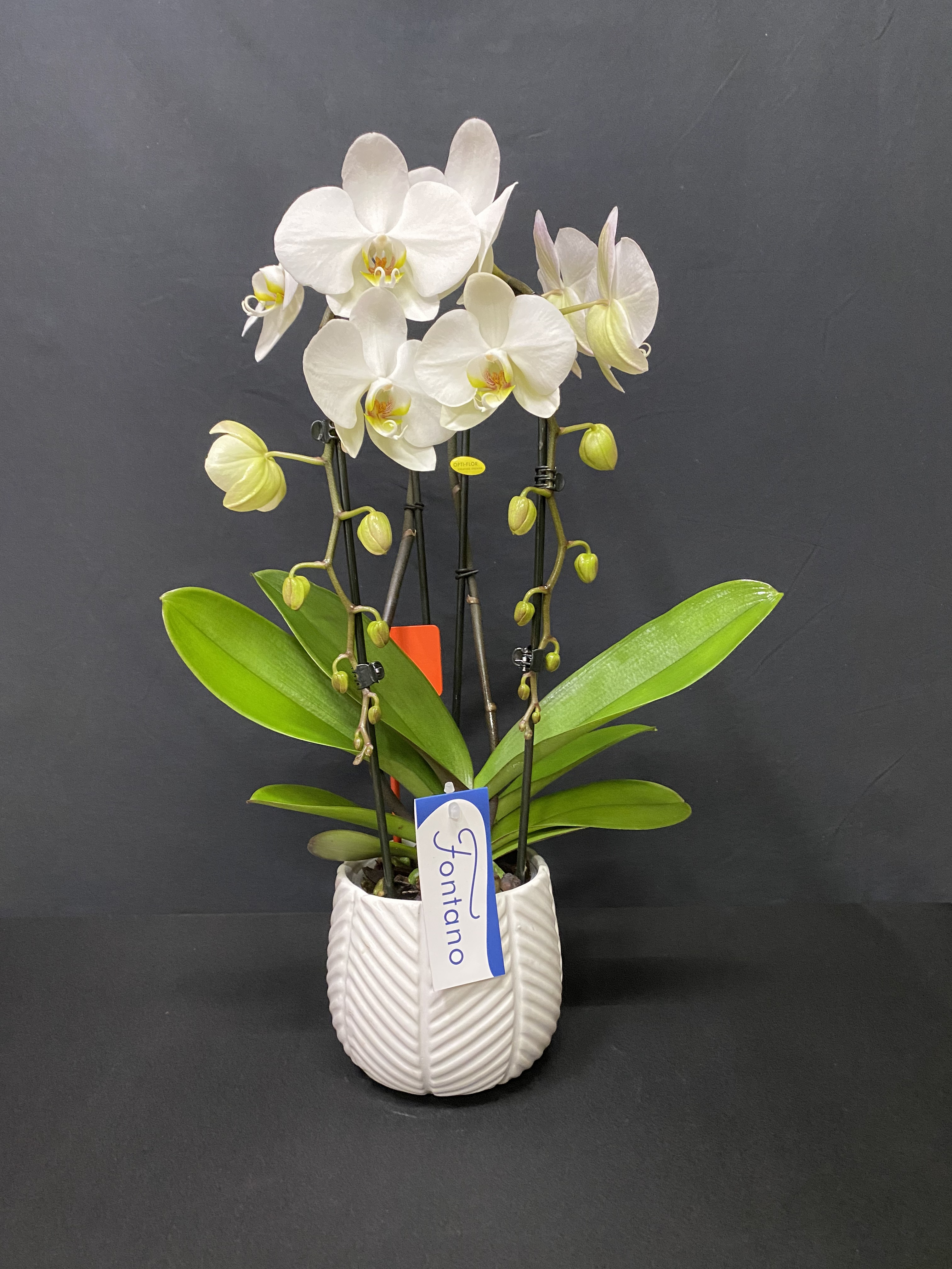 L'orchidea Phalaenopsis, adatta a qualsiasi tipo di occasione è sempre tra le più eleganti delle piante da regalare, lavorata in una particolare forma a fontana.