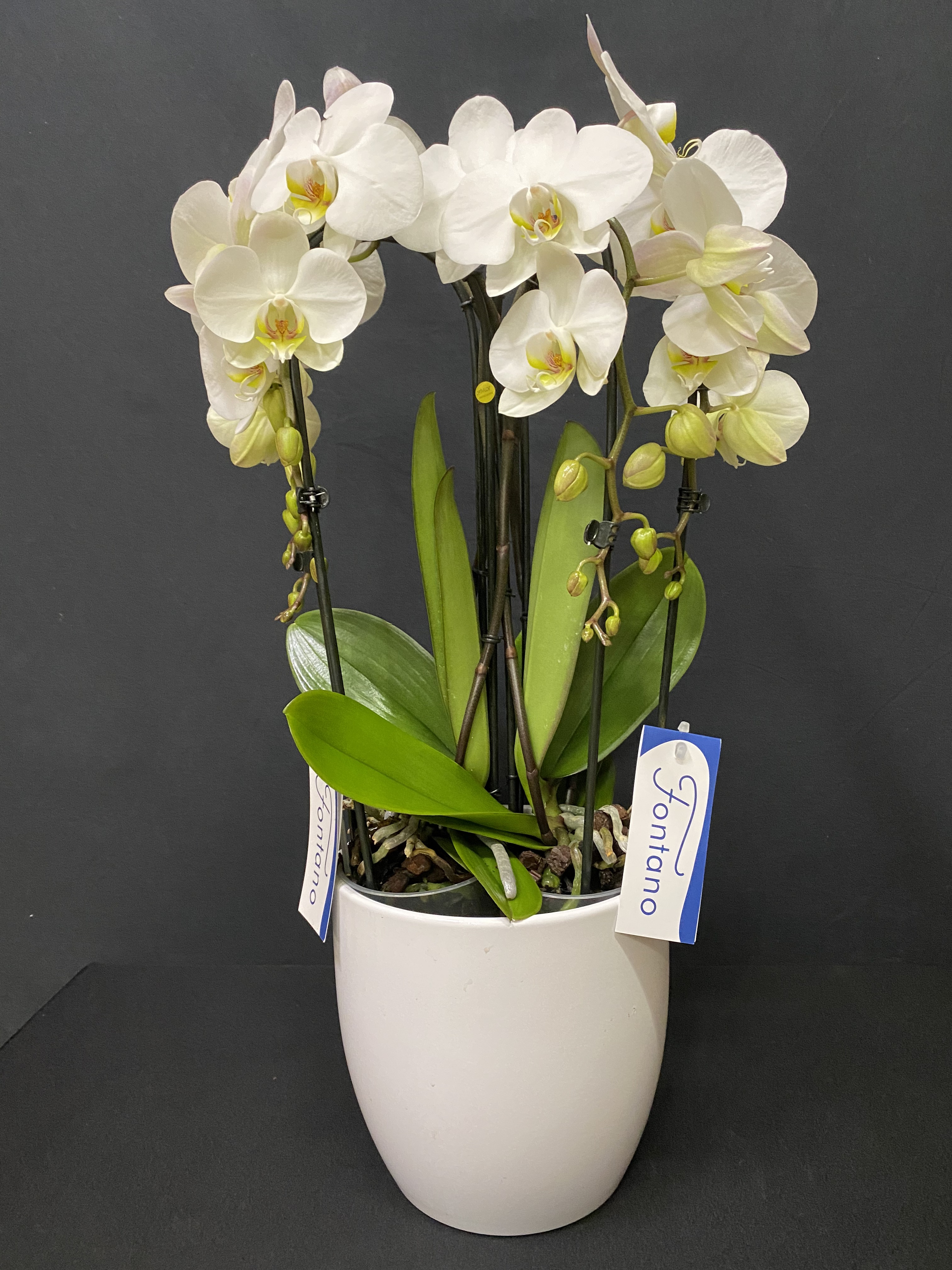 L'orchidea Phalaenopsis, adatta a qualsiasi tipo di occasione è sempre tra le più eleganti delle piante da regalare, lavorata in una particolare forma a fontana.