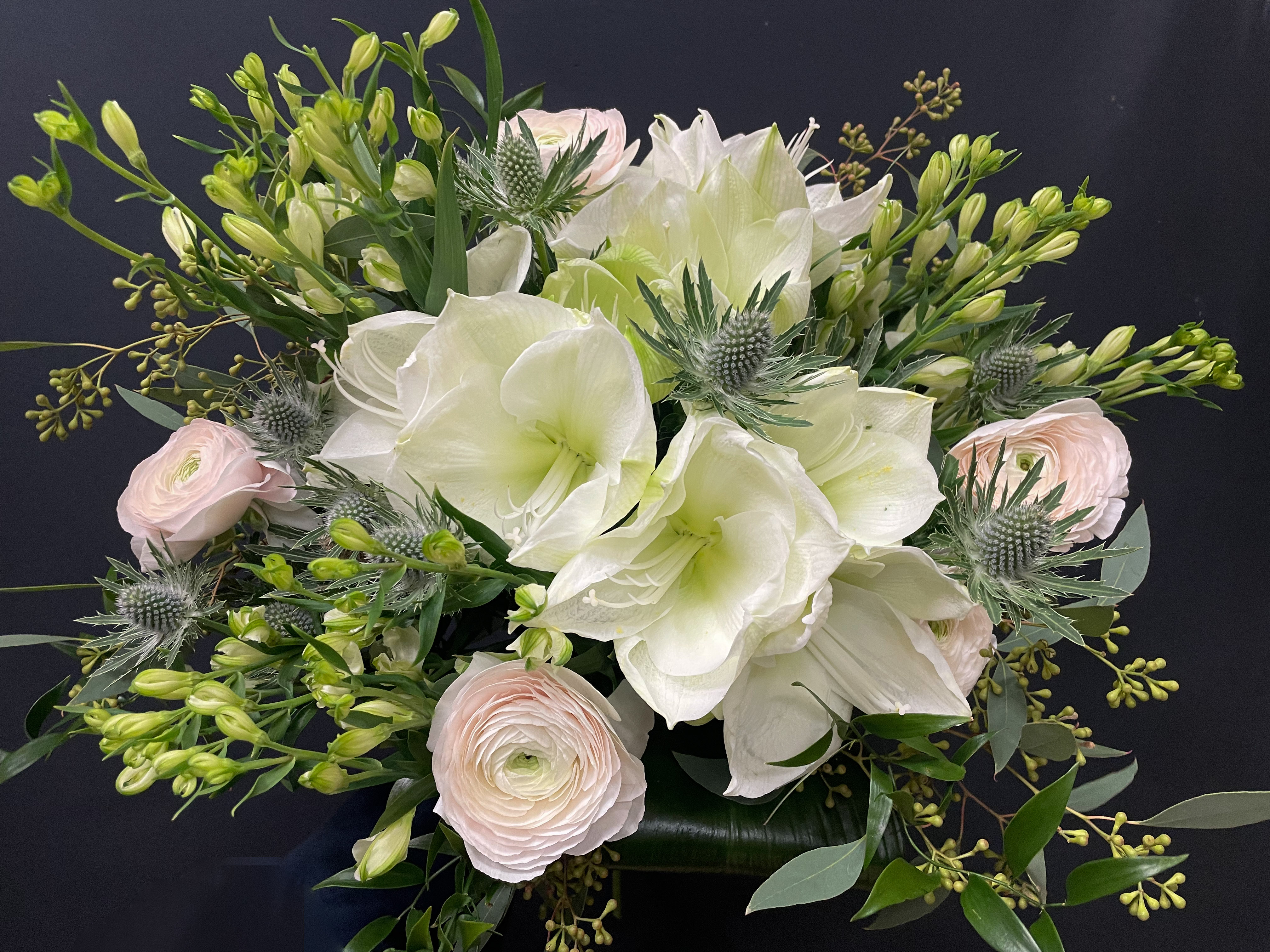 Qual'ora non fossero disponibili i fiori presenti in foto verranno sostituiti, in base alla stagionalità, mantenendo le tonalità di colore e la qualità degli stessi.