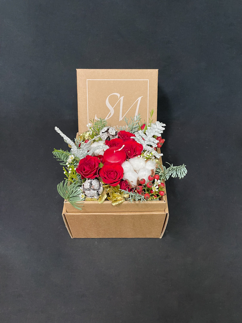 Le ChristmasBox sono composizioni floreali comode e romantiche, preparate a tema natalizio con fiori freschi e una candela. Per farla durare più a lungo dovrai semplicemente aggiungere l'acqua nell'idrospugna, alla base dei fiori, ogni due giorni.